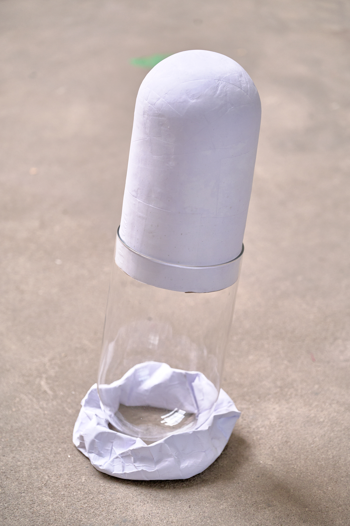 IKEA side table, modeling balloons, paper, paste